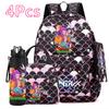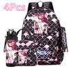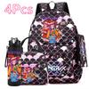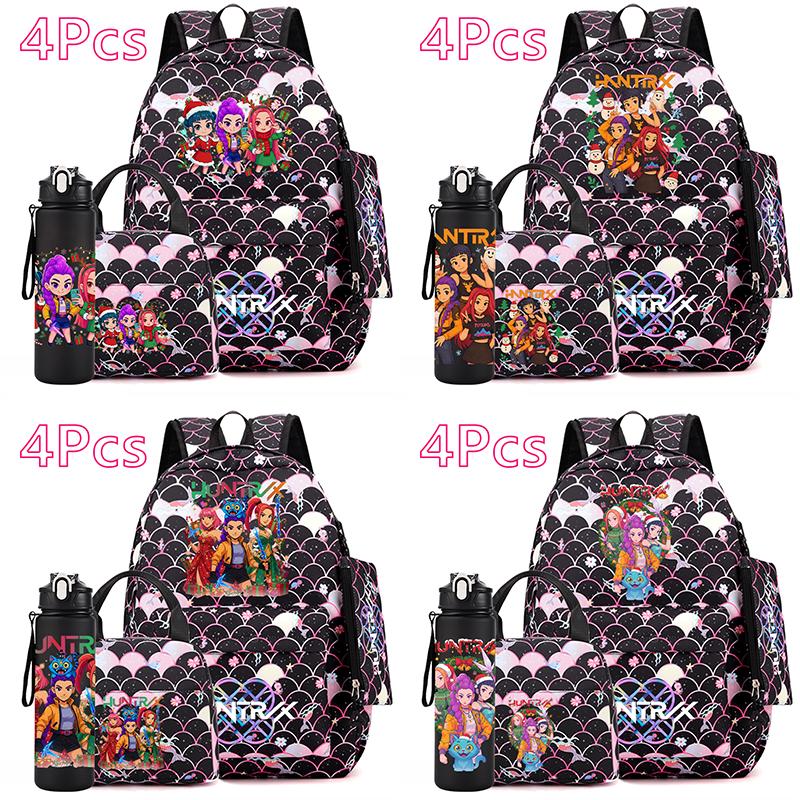 4Pcs/set Christmas Kpop Printed Backpack with Handbag Pencil Case 750Ml Water Bottler for Teenager Boy Girl Large Capacity Bookbag Schoolbag Kid Gift