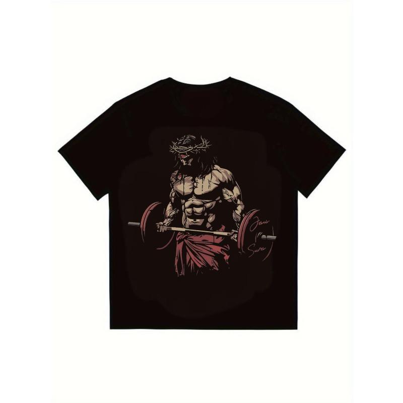 Men's Black T-Shirt Jesus Christ Barbell Graphic Print Gym Workout Casual Wear