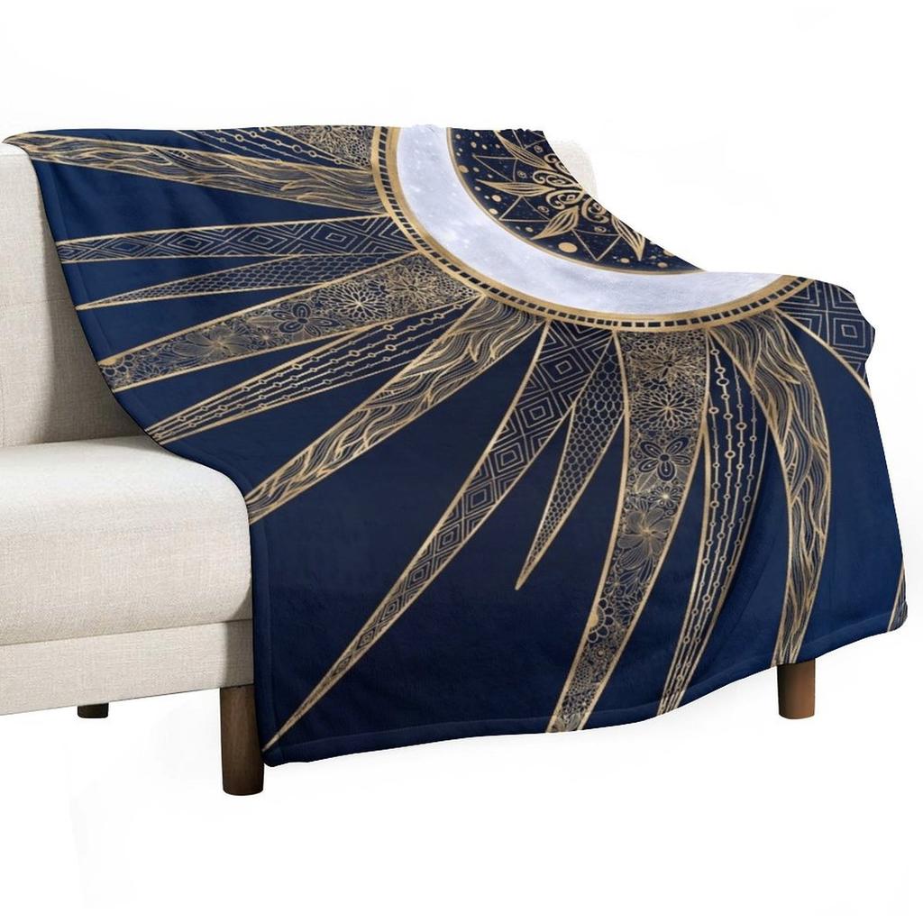Blue Gold Sun Moon Mandala Doodling Art Throw Blanket Blankets For Baby Cosplay Anime Winter Beds Luxury Blankets