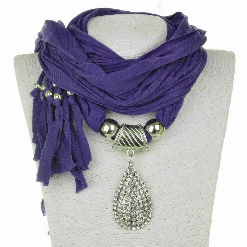 Tassel Polyester Scarf Women's Jewelry Scarf Full Diamond Water Drop Pendant Scarf