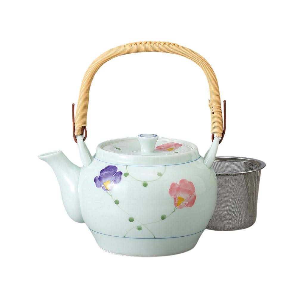 Ale-net Teapot (Stainless Steel with Strainer), 1100cc, Arita Ware, Ribbon Design, with Basket, No. 8 Teapot, Porcelain, Made In Japan, Stylish