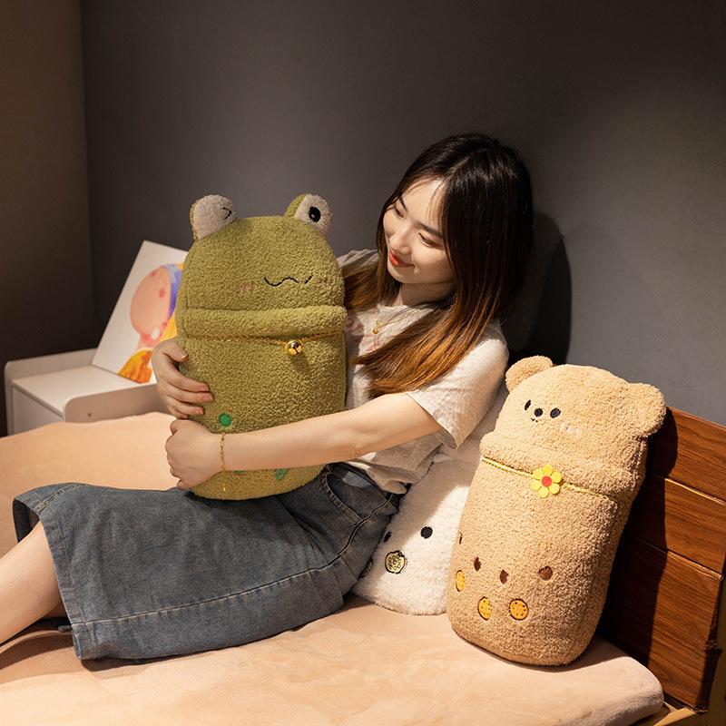 Cartoon Milk Tea Animal Panda Lion Throw Pillow Blanket Plush Toy Frog Piggy Doll Office Lunch Break Air Conditioner Blanket