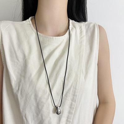 Silver Minimalist Water Drop Glossy Metal Black Leather Necklace - Girls' Fall Style Accessory