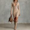 Women's Casual Fashion V-neck Long Sleeve Retro Christmas Print Retro Dress