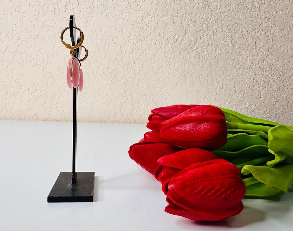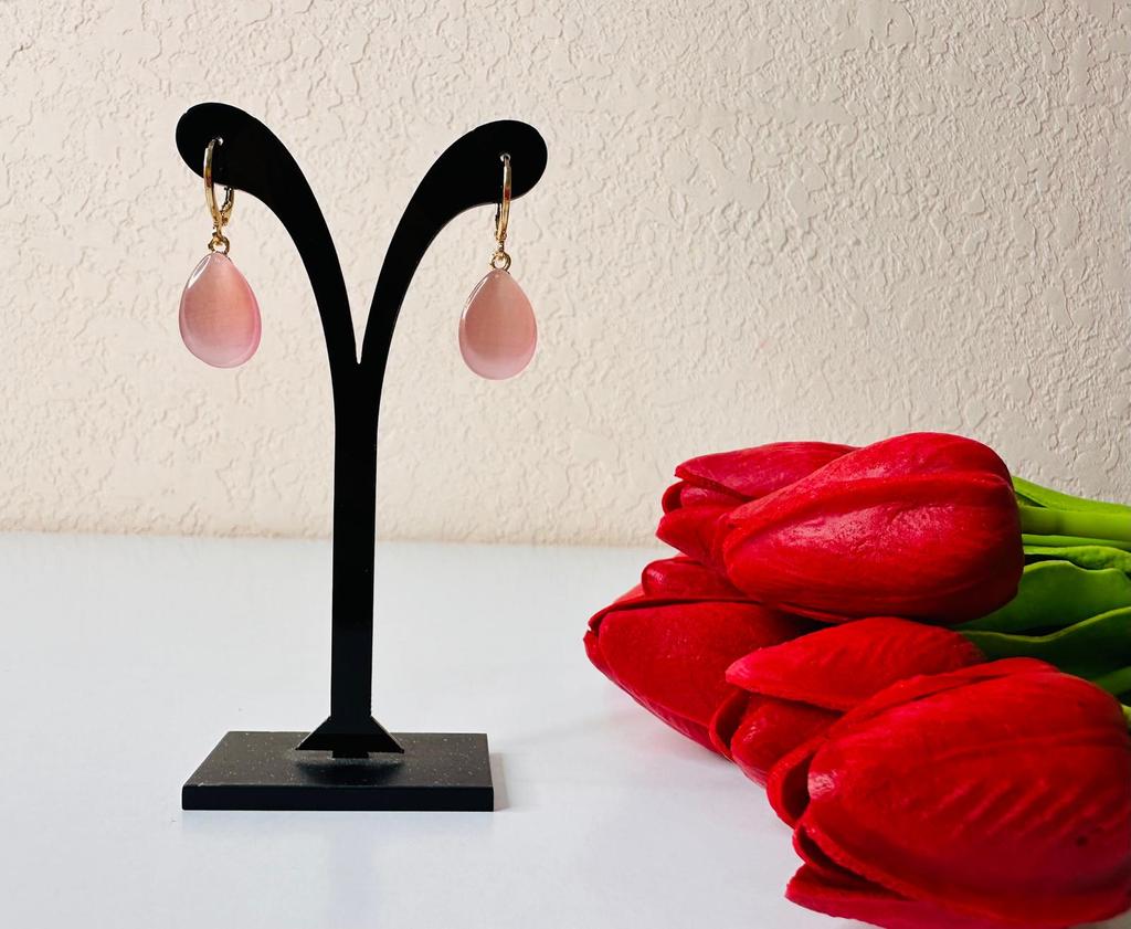 With a drop shape in a soft pink hue, they are the ideal accessory to add a discreet touch of color and femininity to any outfit. They are simple enough to wear daily in the office, but have that elegant shine that makes them suitable for a dinner or a special event. It is the type of detail that completes a "look" without overwhelming it, maintaining a clean and modern aesthetic.