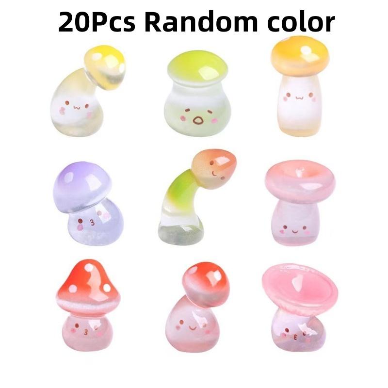 20pcs Miniature Resin Mushroom Figurines Elf Glow At Night Toy Fairy Garden Decoration DIY Home Decor Ornament Toy Gift