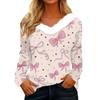 Women's Valentine's Day Printed Long-Sleeved Shirt, V-Neck, Casual Loose-Fitting T-Shirt Top