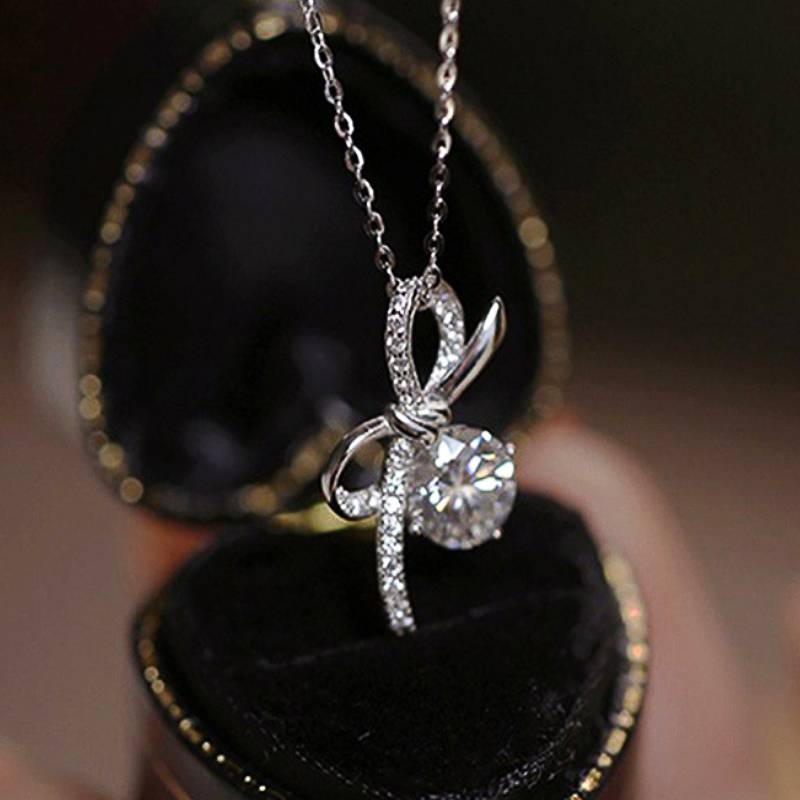 Huitan Fresh Style Women Pendant Necklace Bowknot Shaped Aesthetic Inlaid Shiny CZ Accessories Jewelry for Wedding Anniversary