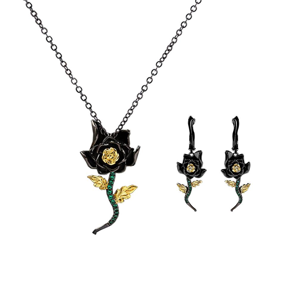 925 Jewelry Set for Women Fashion Sunflower Flower Earring Necklace Black Gold Jewelry Wedding Bridal Necklace Jewelry