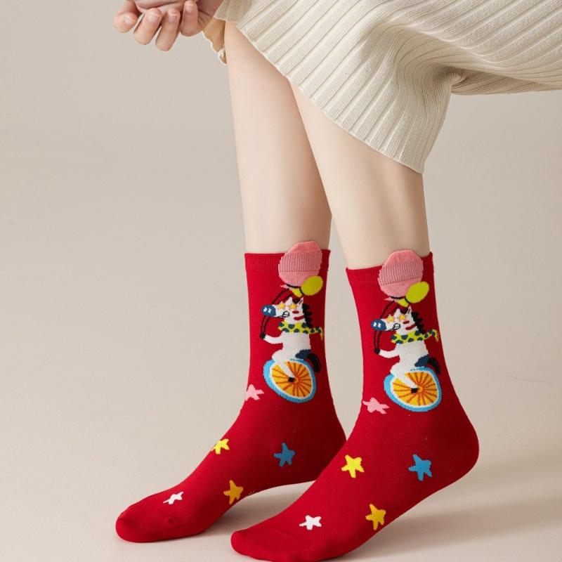 1/4Pair Cartoon Pony Socks Year Red Socks Autumn Winter Warm Mid-Tube Socks For Men Women Christmas Party Gifts