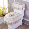4 Seasons Golden Velvet Toilet Three Piece Set Lace Fabric Zipper Style High-end Toilet Seat Cushion Toilet Seat Cushion Cover