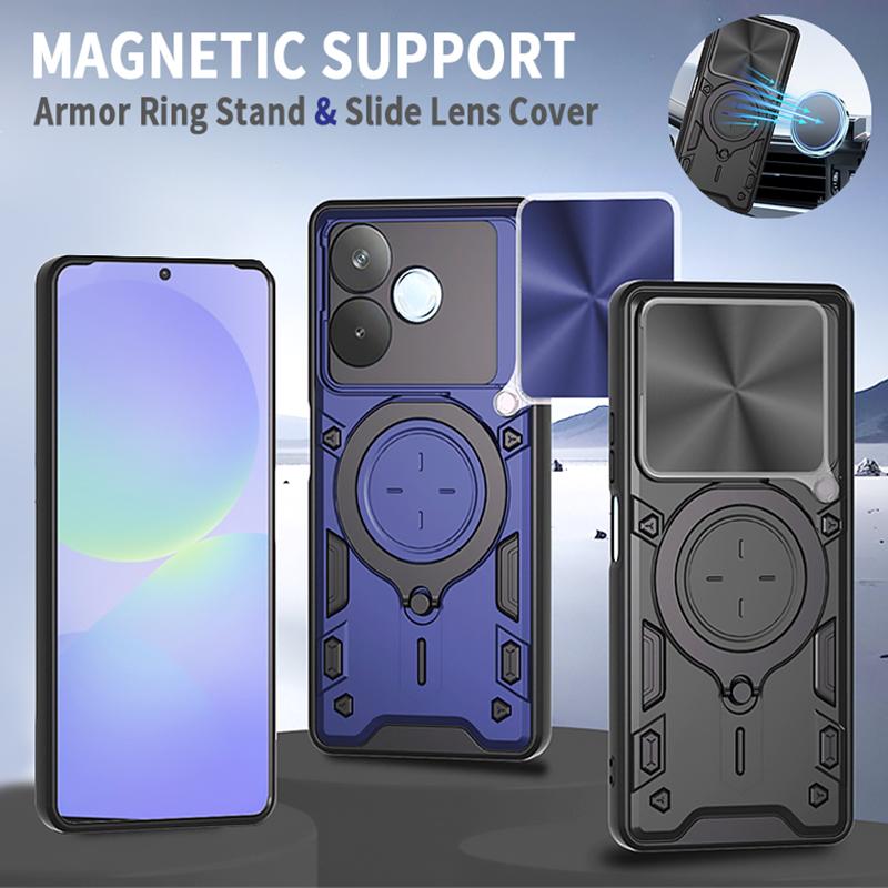 For OPPO A5 Pro 5G Case Slide Lens Protector With Ring Magnetic Holder Back Cover for Oppo Oppo A5Pro 5G Armor Silicone PC Funda