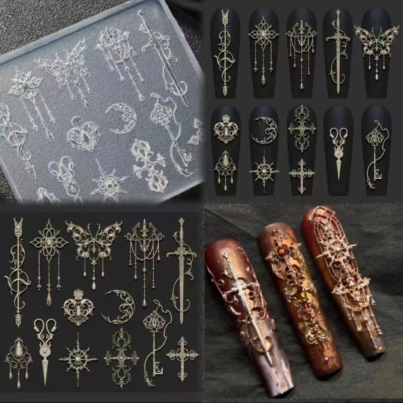 1 Pcs European Retro Style 3D Relief Silicone Mold,Transparent Flowers Bow Tie Nail Art Silicone Carving Mold Mould Template