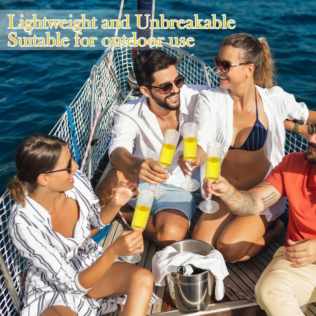 16-Pack Gold Glitter Clear Acrylic Champagne Flutes, 5.5 Oz Reusable Plastic Wedding Party Glasses