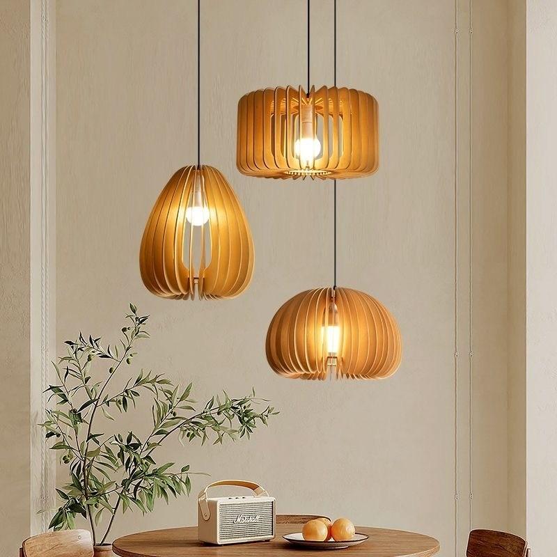 Dining Tea Room Wooden Lantern Chandelier Living Room Bedroom Kitchen Decoration Ceiling Hanging Lamp Chinese Bamboo Lamp