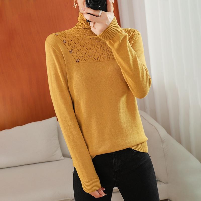 Duplex Collar Cotton Thread Pullover Long-sleeved Sweater for Women In Spring and Autumn New Hook Flower Hollow Inner Base Top