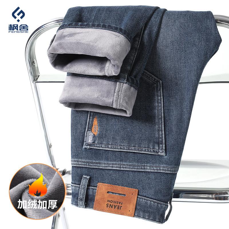Autumn and Winter New Velvet Thickened Fashion Versatile Slim-fit Small Feet Elastic Jeans Trousers