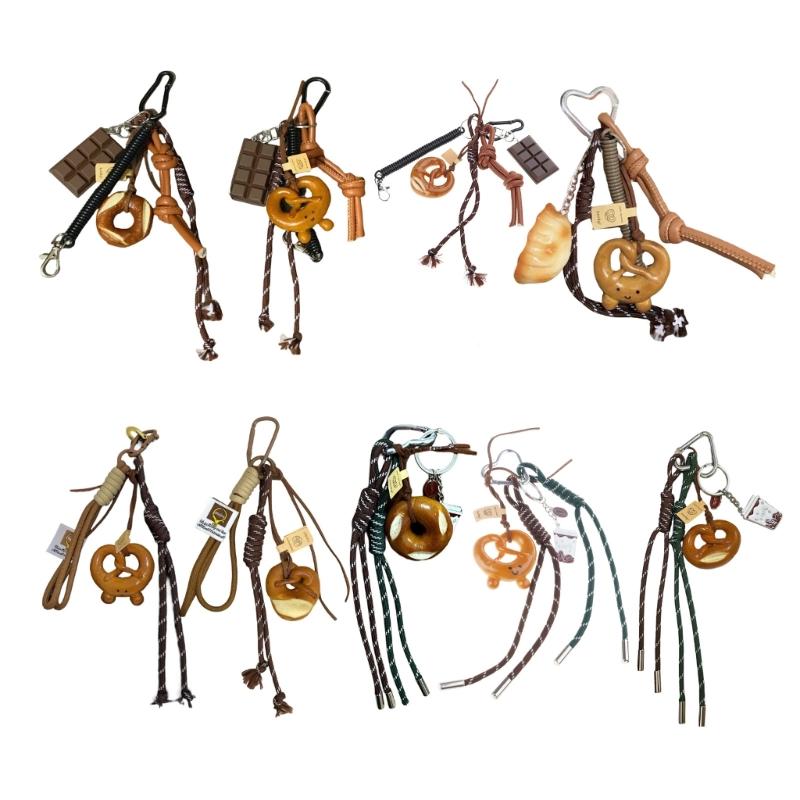 Bagel Pretzel Chocolate Bag Charm Pendant Keyring Braided Rope Keychain Charm for Backpack Purse Handbag Decorations