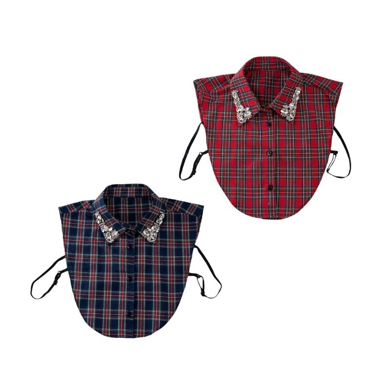 Elegant Plaids Detachable Collar Rhinestones Embellished Polyester For Formal Wear