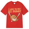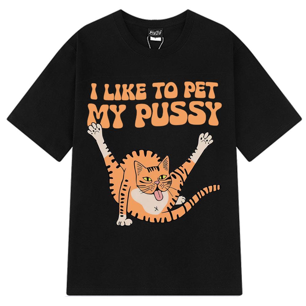 I Like To Pet My Pussy Funny Cat Meme T Shirt Men Women Vintage T Shirts Short-sleeved Harajuku Loose Cotton T-shirts Streetwear