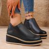 Wedges Women's Boots Retro Female Ankle Boots Trend Round Toe Platform Booties Comfortable Zipper Leather Shoes for Women Heeled
