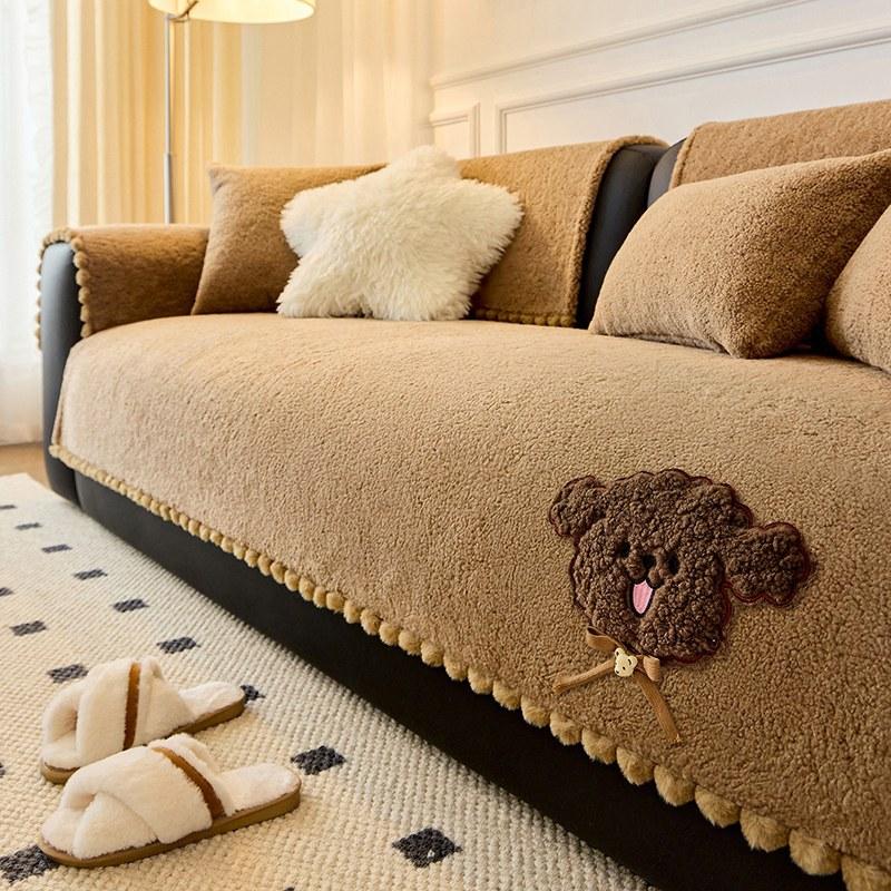 New One Piece Cute and High End Original Sofa Cushion for Autumn and Winter Teddy Fleece Anti Slip Sofa Cover Cover