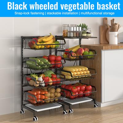 4-Tier Kitchen Carts On Wheels Adjustable Metal Large Capacity Fruit Vegetable Storage Basket