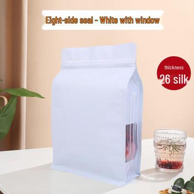 White Window Kraft Paper Bag - Resealable Stand-up Bag for Snacks and Tea