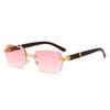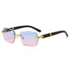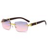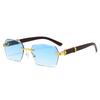 Trendy Frameless Sunglasses with Wood Grain Legs - European and American Irregular Square Design