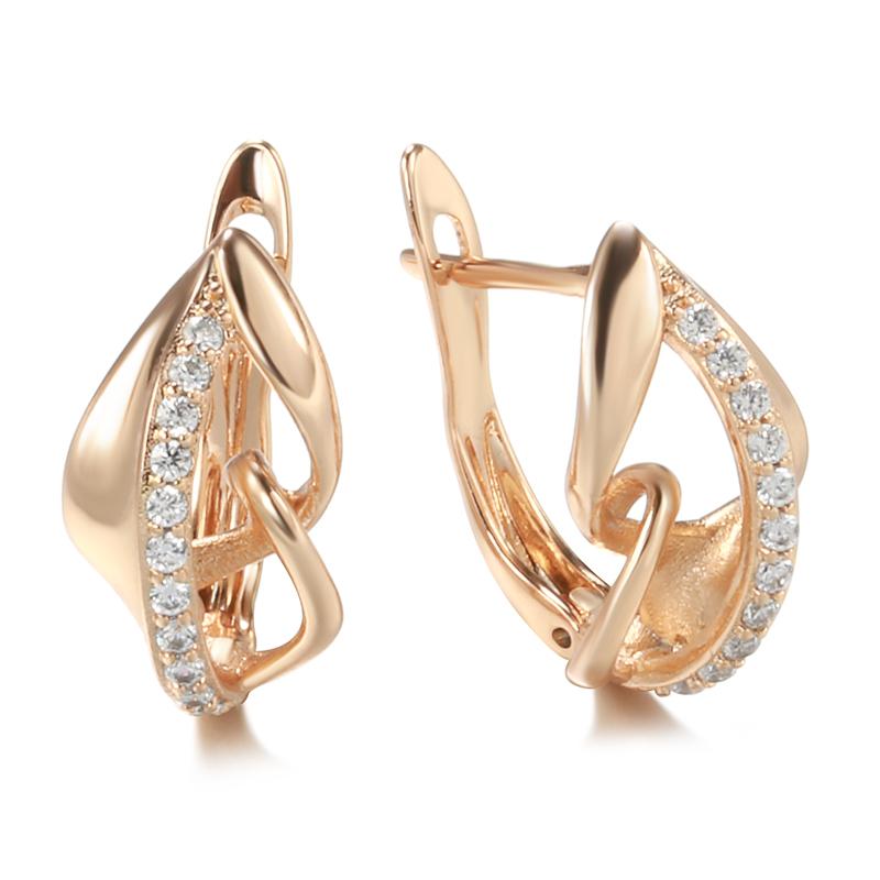 New Unusual Earrings Rose Gold Micro Wax Inlay Natural Zircon Women Earrings Fashion Party Wedding Jewelry
