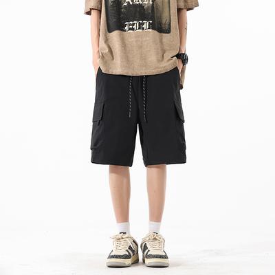 Japanese Style Men's Summer Thin Multi-Pocket Workwear Shorts Loose Casual Outdoor Drawstring Knee-Length Short Pants