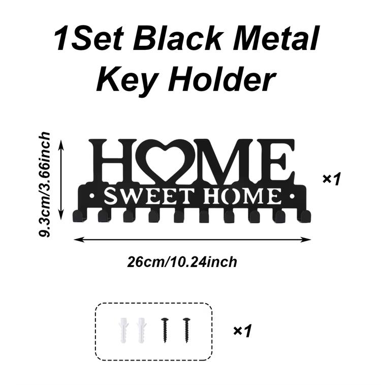 1pc Black Metal Keys Holder Wall Mount Key Holder Sweet Home Design Style Key Rack for Key Hanger With 10 Hooks