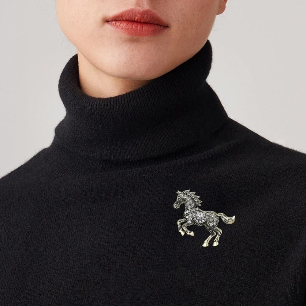 Casual Rhinestone Horse Brooches Luxury Metal Badge Pin Zodiac Animal Lapel Pins New Year Gifts