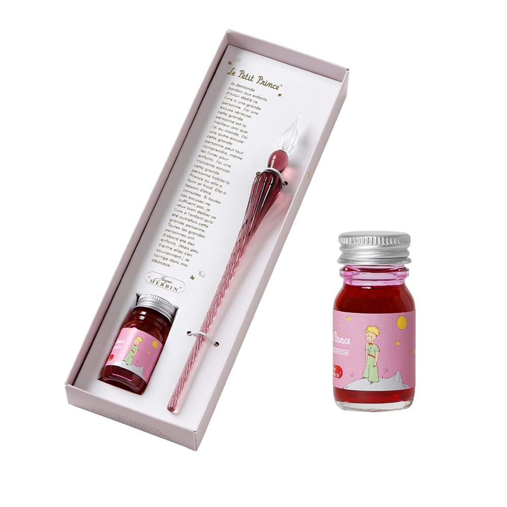 French Herbin Glass Pen Little Tsumugi Purple Mini Ink Tender Rose HERBIN Hb21477setlpp [Traditional Brand] "The Prince" & (10ml) Set, Handcrafted,