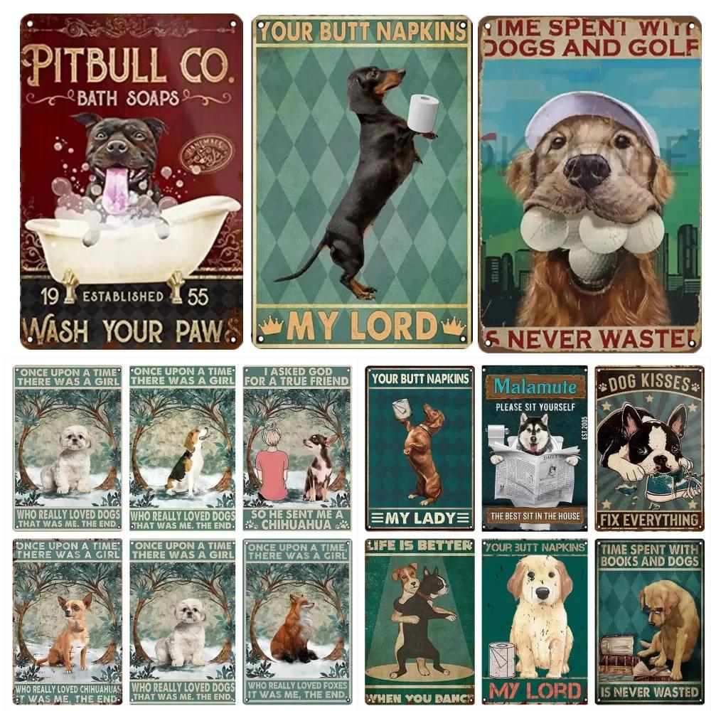 Dachshund Metal Tin Sign Tissue Dog Retro Vintage Bar Decor Wall Poster Golden Retriever Husky Plaque Home Decoration Style