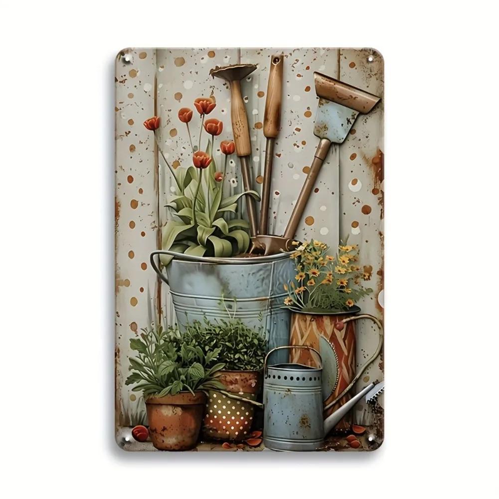 1pc 8x12" Retro Waterproof Metal Tin Sign - Vintage Garden Tools/Potted Plants Decor, Indoor/Outdoor for Home Yard Patio Bar