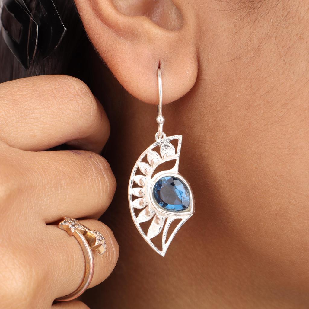 London Blue Topaz Gemstone Silver Pretty Earring 1.5" 925 Sterling Silver Women Jewelry For Birthday Gift CE-26-6