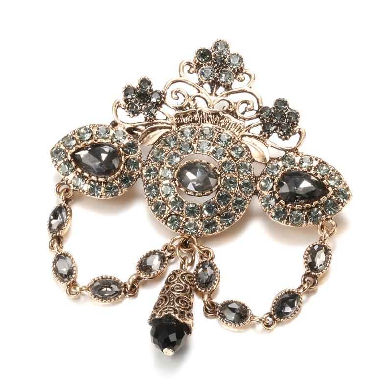Fashion Boho Crown Brooch For Women Antique Gold Color Full Gray Crystal Moroccan Wedding Jewelry African Bridal Bijoux