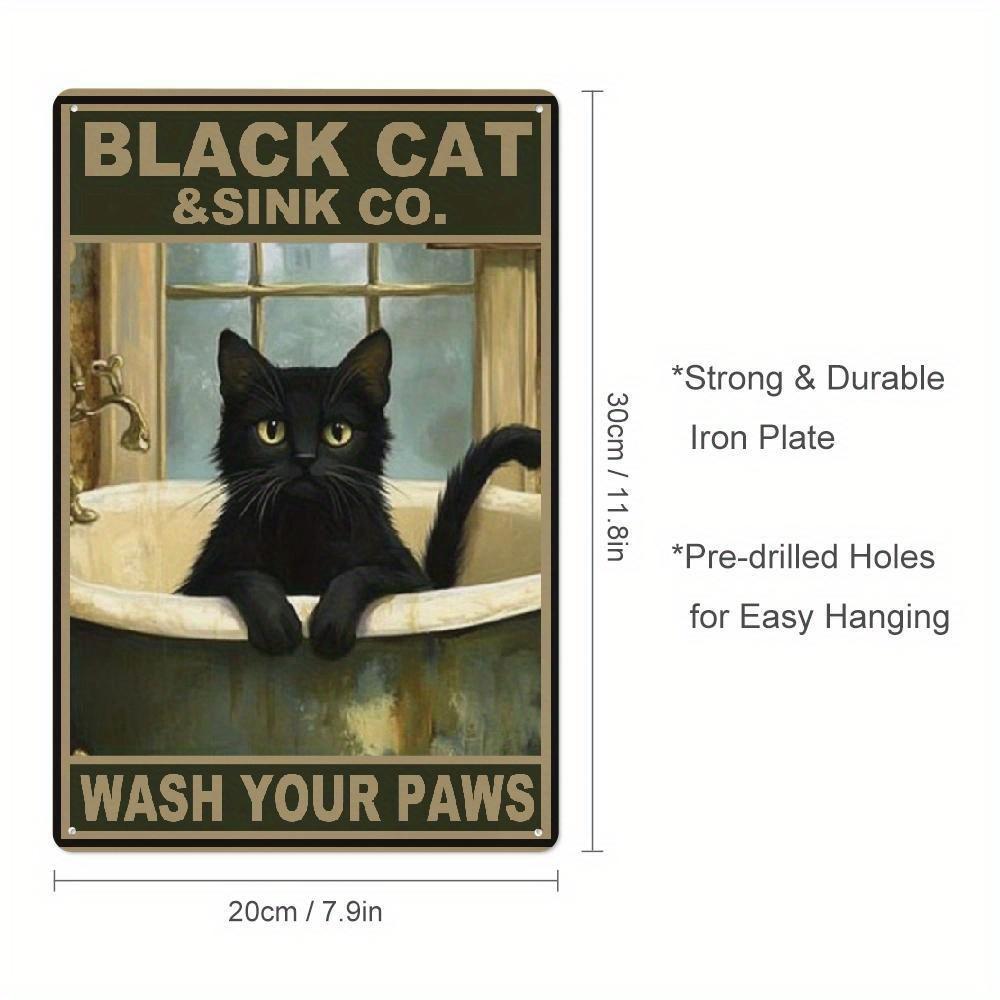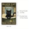 Vintage Black Cat "Wash Your Paws" Metal Tin Sign - Humorous Bathroom Wall Art, Rustic Farmhouse Decor for Home, Bathroom Decor