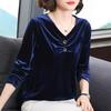 Golden Velvet Bottoming Shirt Women's Spring and Autumn Western Style Mother Long-sleeved Shirt Large Size Slim Collar Top Clothes