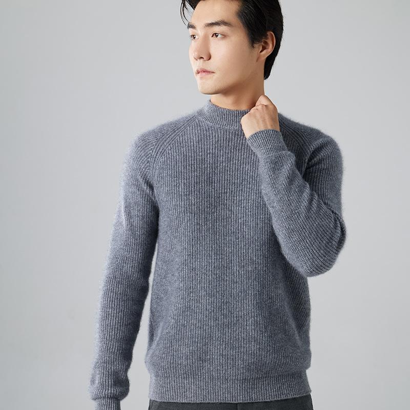 New Shoulder Sleeve Cashmere Sweater Men's Semi-turtleneck Thickened Sweater Solid Color Knitted Wool Base