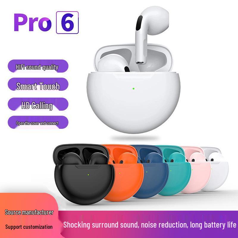 Pro6 6th Gen True Stereo Bluetooth TWS Earphones with Touch Control & Noise Reduction for Sports