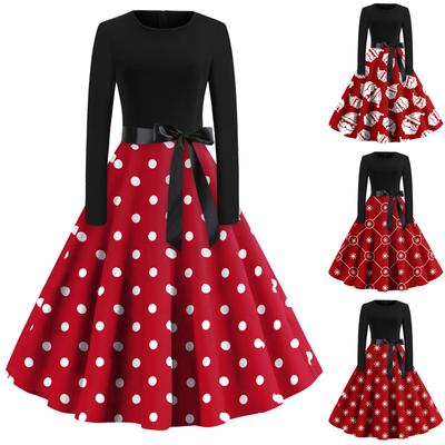 Women's Fashion Vintage Long Sleeve Round Neck Christmas Printed Evening Party Dresses Dresses
