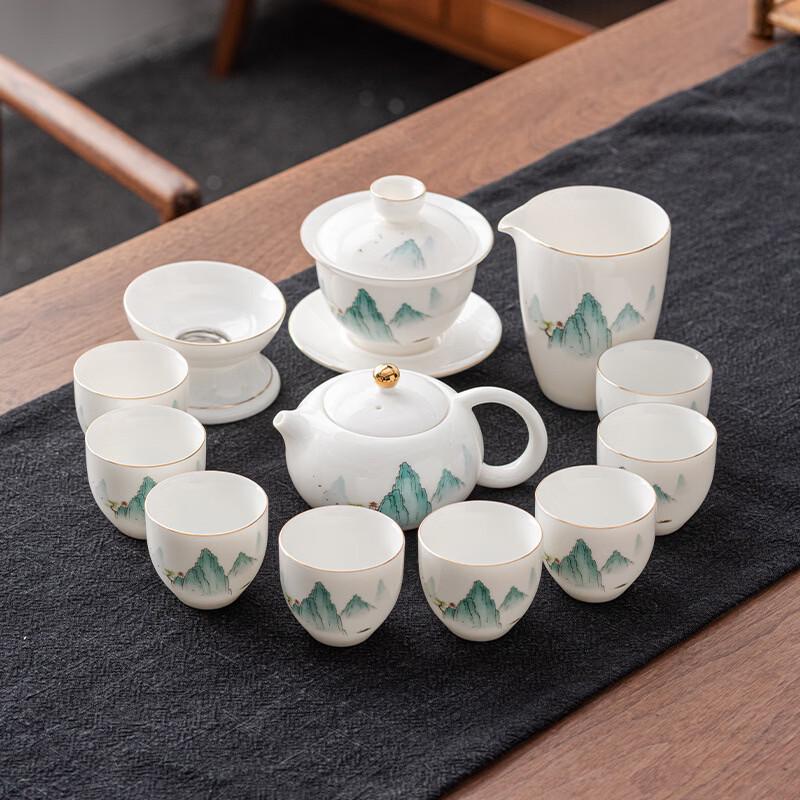 Handon 13-Piece Mutton Fat Jade Kung Fu Tea Set