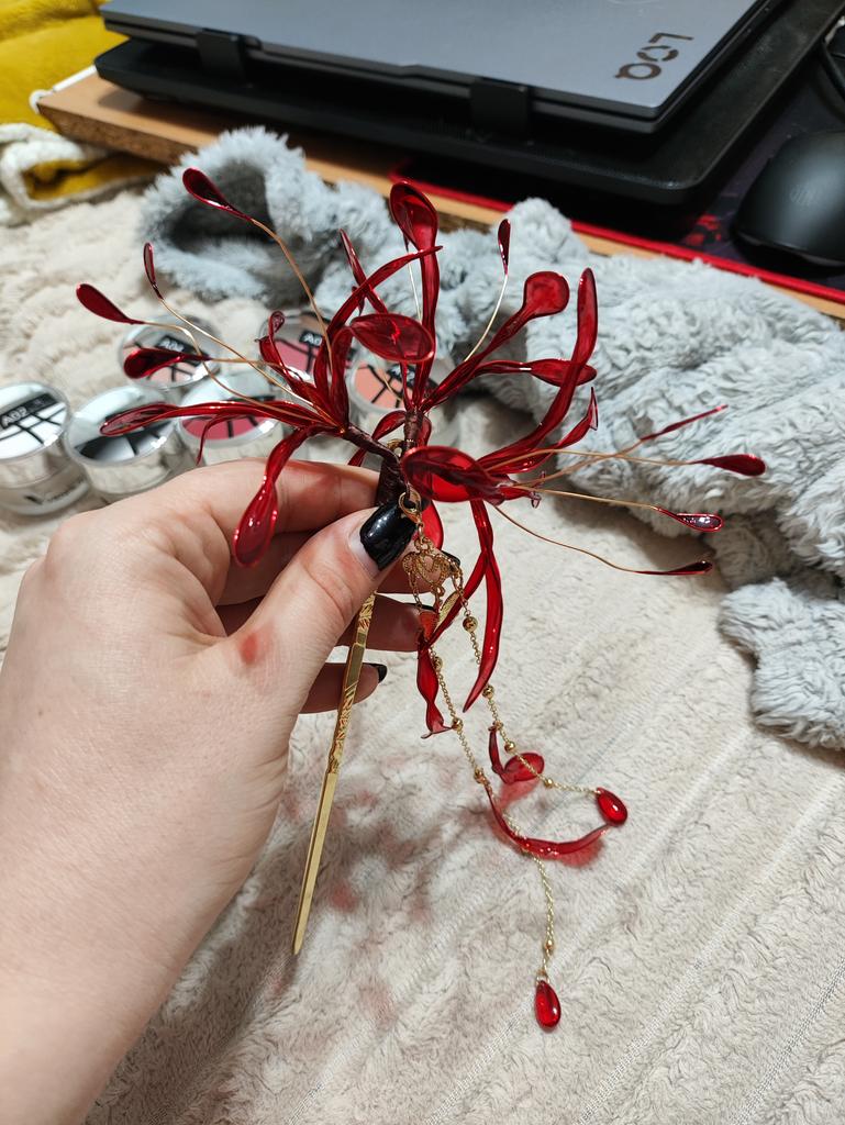 Spider Lily Dripping Oil Tassel Hairpin: Elegant Ancient Style Hanfu Hair Fork for Women