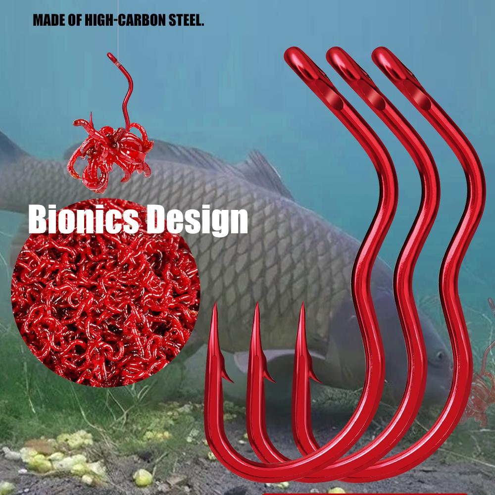 12pcs Red Flip Hook Tube Anti Unhooking, Specially Designed For Carp Fishing With Three Curved Handles, High Carbon Steel Sharp Fish Hook Fishing Gear