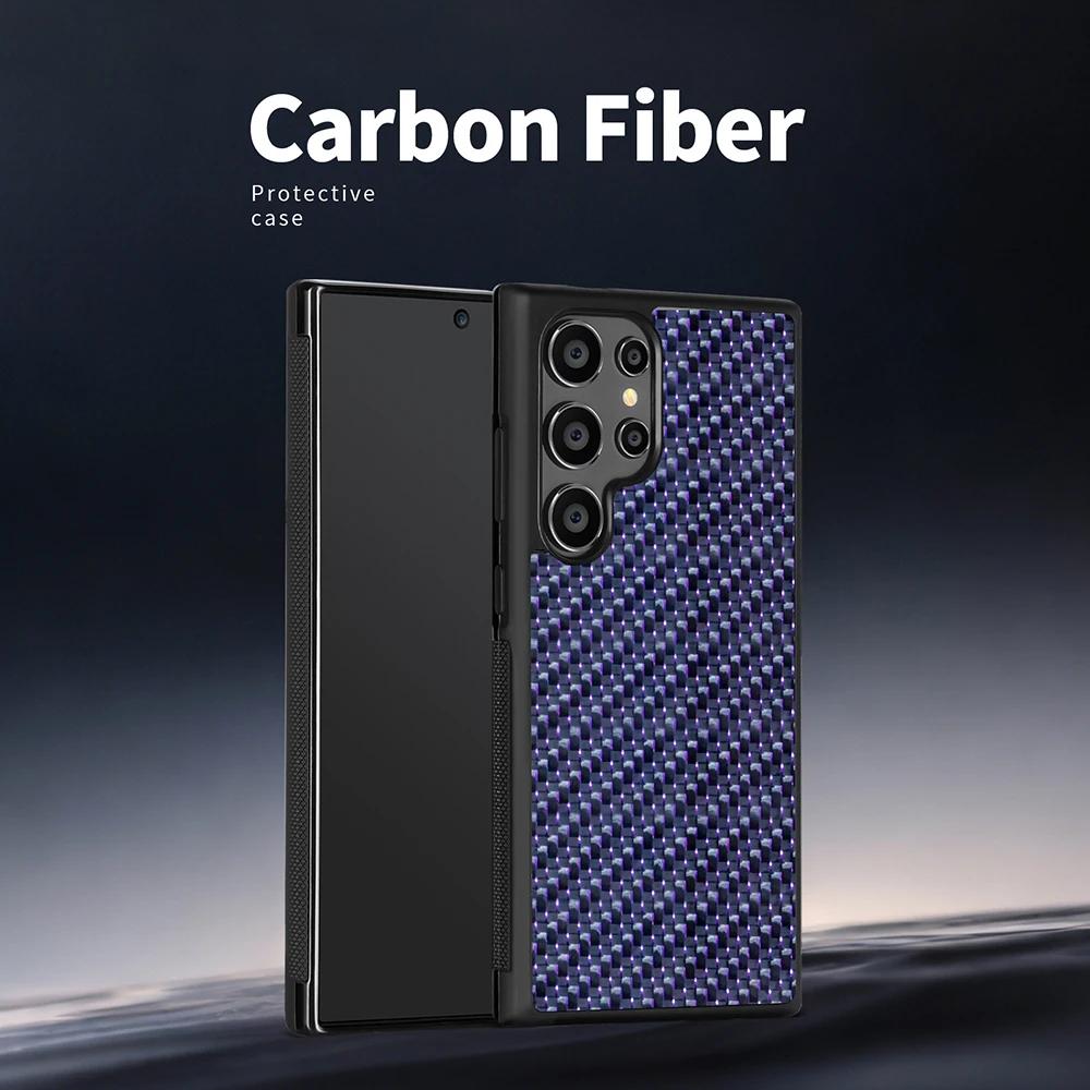Luxury Carbon Fiber Texture MagSafe Case For Samsung Galaxy S25 S24 S23 S22 Plus Ultra Alloy Lens Shockproof Cover