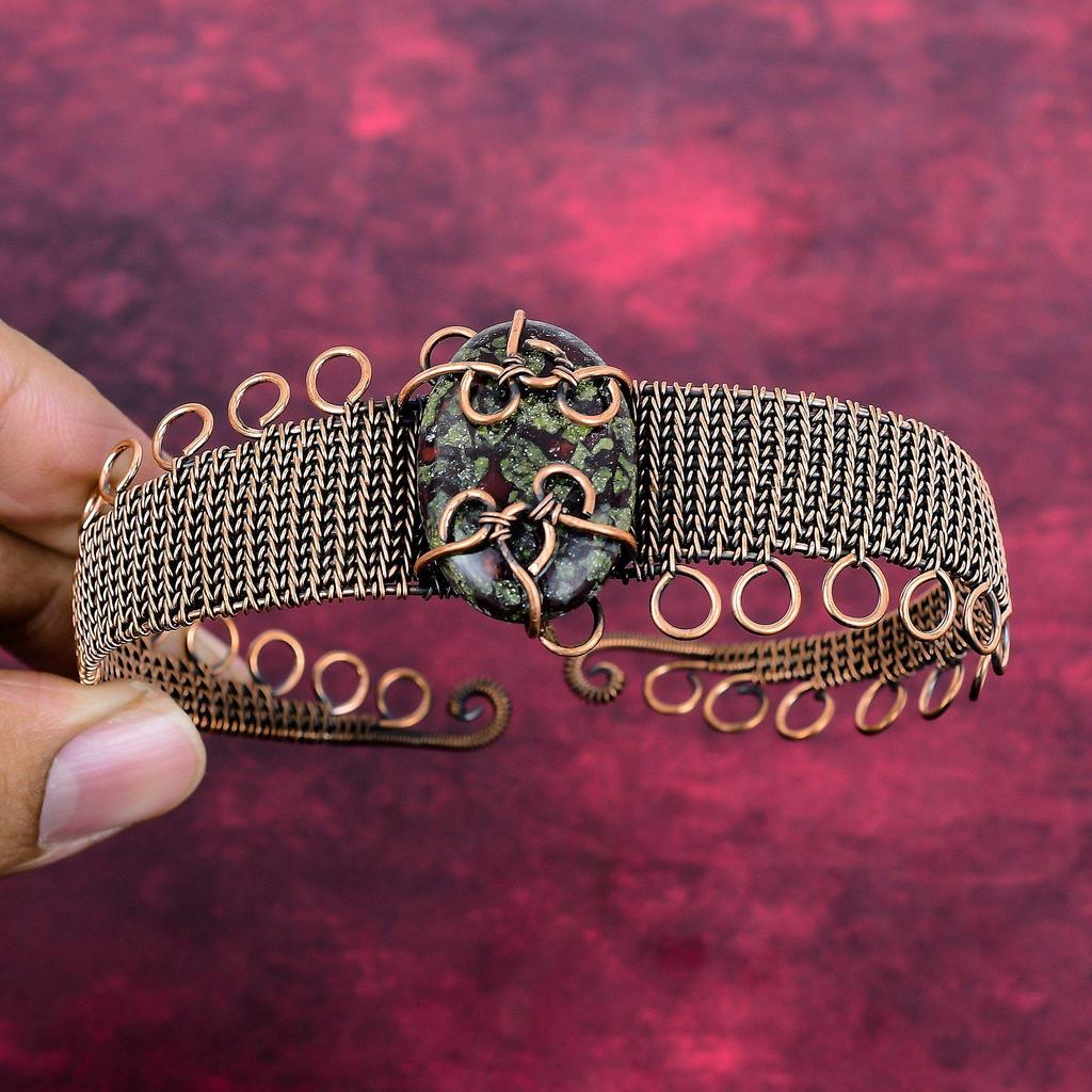 Dragon Bloodstone Gemstone Cuff Bracelet Copper Wire Wrapped Adjustable Bangle