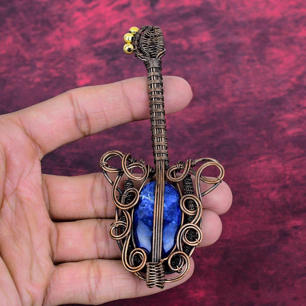 Sodalite Gemstone Pendant Handmade Guitar Pendant Copper Wire Wrapped Jewelry