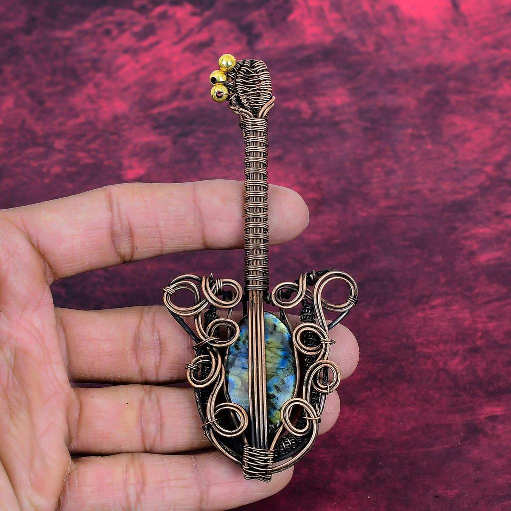 Labradorite Pendant Guitar Pendant Copper Wire Wrapped Jewelry Gemstone Pendant